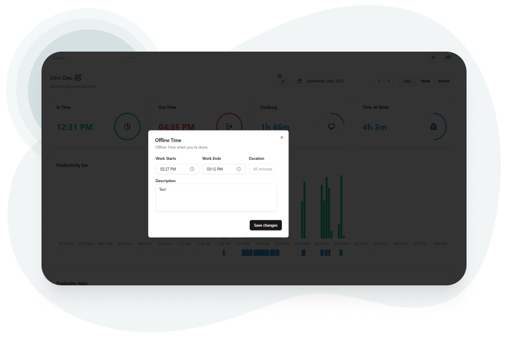 WorkHive ensures every minute of work is captured accurately by automatically tracking active computer usage in the background. Employees no longer need to worry about starting or stopping timers, reducing errors from manual entries. At the same time, managers can manually add or adjust untracked or offline hours, ensuring complete transparency, accurate productivity metrics, and reliable billing. This combination allows employees to focus on their tasks while managers receive precise, trustworthy timesheets effortlessly.